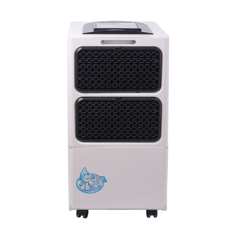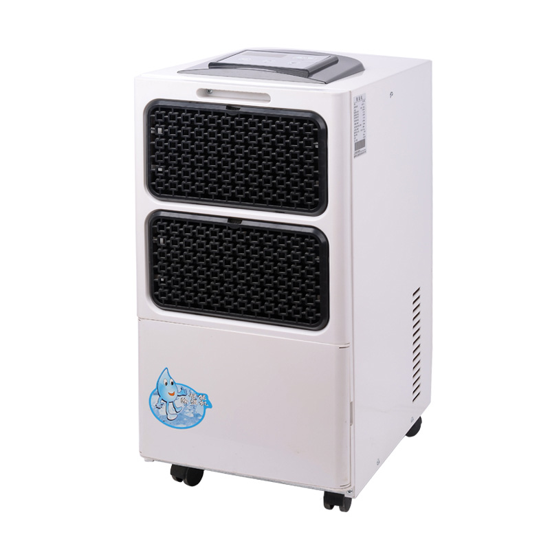 本產(chǎn)品屬冷凍式除濕機(jī),整機(jī)有壓縮機(jī)、熱交換器、風(fēng)扇、機(jī)殼及控制器組成,其工作原理是:由風(fēng)扇將潮濕空氣抽入機(jī)內(nèi),經(jīng)過制冷系統(tǒng)(壓縮機(jī),蒸發(fā)器,冷凝器)相互作用下凝結(jié)成霜,系統(tǒng)自動(dòng)升溫化霜成水流入盛水箱,產(chǎn)生出干燥空氣排出,如此循環(huán)使室內(nèi)濕度降低,潮濕空間逐步達(dá)到干爽的效果。