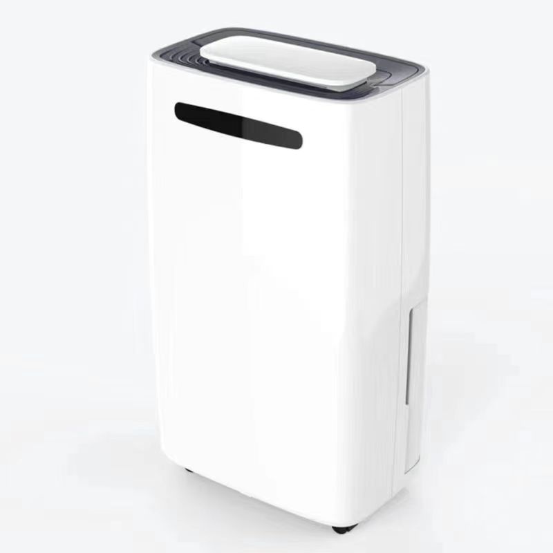 本產(chǎn)品屬冷凍式除濕機(jī),整機(jī)有壓縮機(jī)、熱交換器、風(fēng)扇、機(jī)殼及控制器組成,其工作原理是:由風(fēng)扇將潮濕空氣抽入機(jī)內(nèi),經(jīng)過制冷系統(tǒng)(壓縮機(jī),蒸發(fā)器,冷凝器)相互作用下凝結(jié)成霜,系統(tǒng)自動升溫化霜成水流入盛水箱,產(chǎn)生出干燥空氣排出,如此循環(huán)使室內(nèi)濕度降低,潮濕空間逐步達(dá)到干爽的效果。