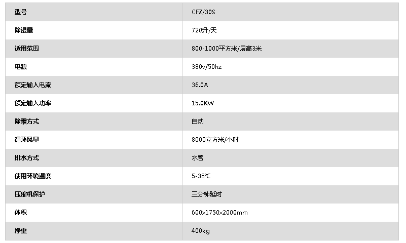 機(jī)組主要部件均由國際知名品牌配件組成,配置了高低壓保護(hù),防凍結(jié)保護(hù),電流過載保護(hù)等重要保護(hù)裝置,并設(shè)有多項(xiàng)運(yùn)行和故障顯示功能,運(yùn)行安全穩(wěn)定。熱交換器經(jīng)進(jìn)口加工設(shè)備精心制造,換熱效率高,結(jié)構(gòu)緊湊,因而運(yùn)行震動(dòng)小,噪音低,除濕量大,故障率低,使用壽命長。
